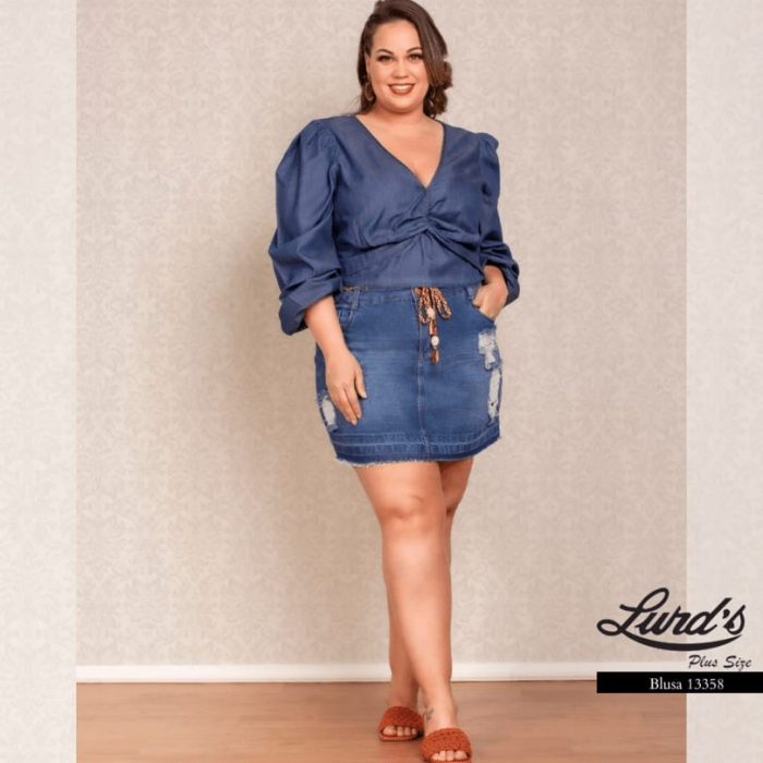 Blusa Jeans Manga Longa Plus Size ref 13358