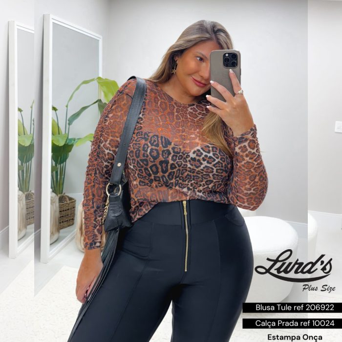 Blusa Tule Feminina Plus Size Marrie Ref 206922 Estampa Onça