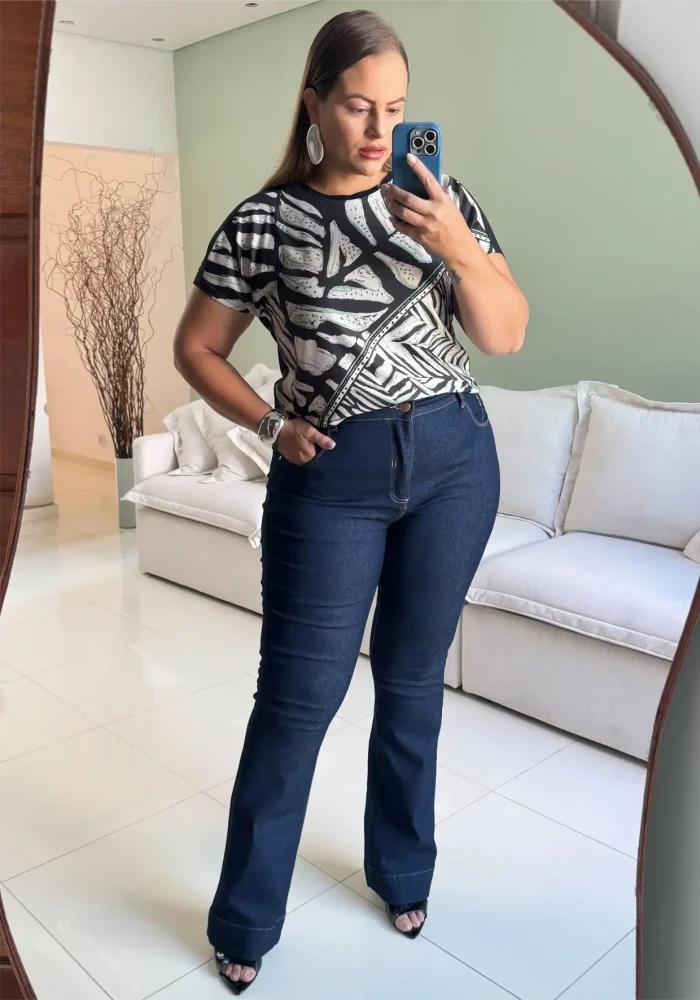 A Calça Boot Cut Feminina Plus Size é perfeita para quem busca estilo e conforto no dia a dia. Feita em jeans com lycra, proporciona um caimento impecável, valorizando a silhueta com muito conforto e mobilidade. O design moderno conta com barra de pala larga, um diferencial que garante um toque sofisticado ao look.