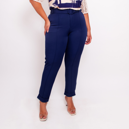 Calça Feminina Plus Size Alfaiataria Com Cinto Ref 11122 Marinho