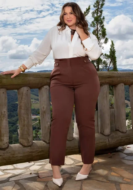 Calça Feminina Plus Size Alfaiataria Ref 800229 Marrom