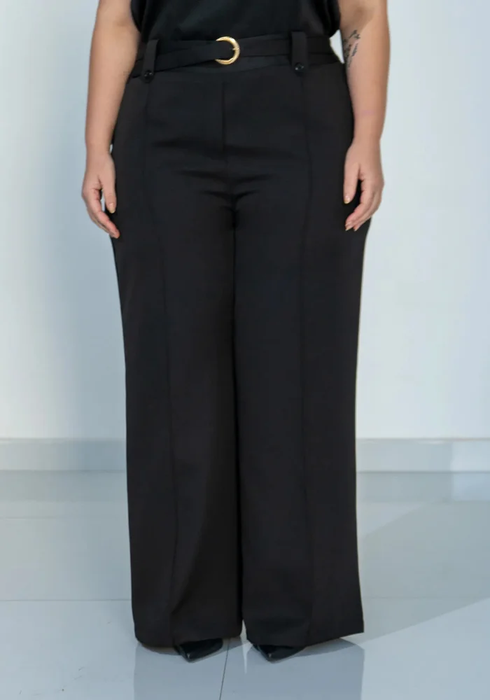 Essa pantalona é puro poder: com modelagem ampla e sofisticada, ela valoriza as curvas, alonga a silhueta e garante um caimento impecável. A escolha perfeita para quem busca estilo, conforto e versatilidade no dia a dia ou em ocasiões especiais.