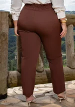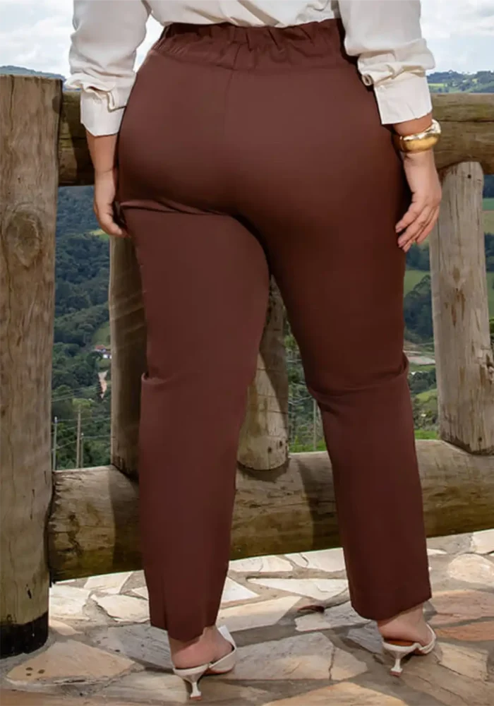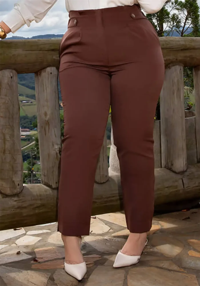 Calça Feminina Plus Size Alfaiataria Ref 800229 Marrom