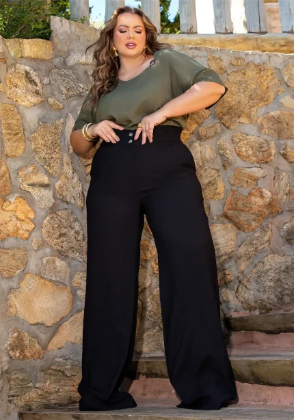 Pantalona Feminina Plus Size Ref 108806 Mostarda