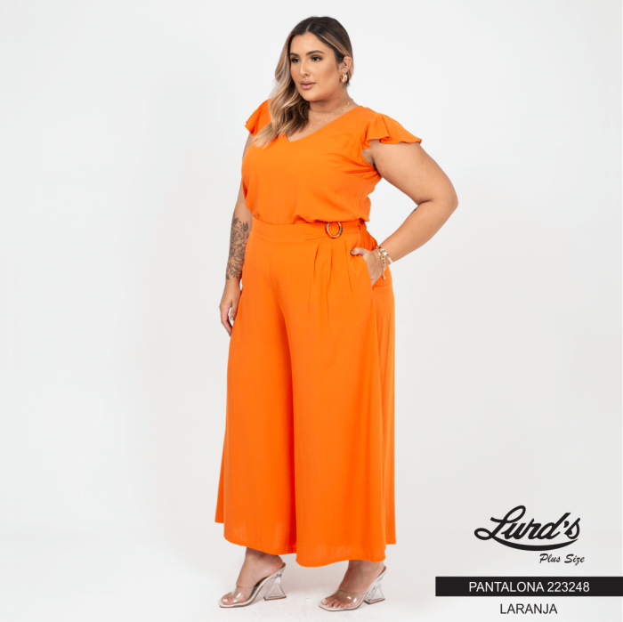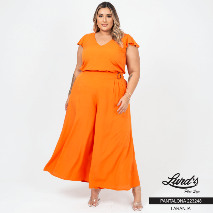 Calça Pantalona Plus Size Ref 223248 Laranja