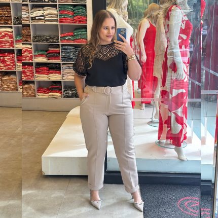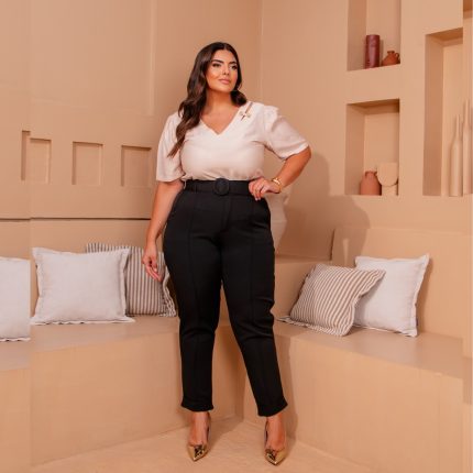 Calça Feminina Plus Size Alfaiataria Com Cinto Ref 11122 Preto