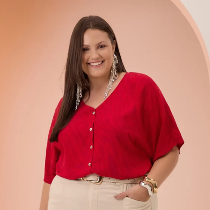 Camisa Feminina Plus Size Manga Curta Ref C5144 Vermelho