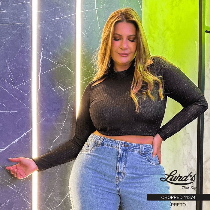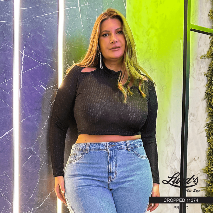 Cropped Feminino Plus Size Manga Longa Ref 11374