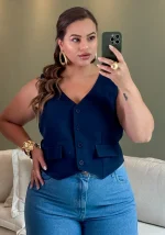 Colete Feminino Alfaiataria Plus Size Ref 12858 Marinho 💙