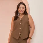 Colete Feminino Plus Size Gorgurinho Ref C5145 Marrom