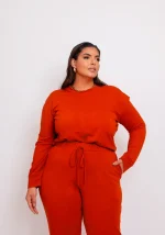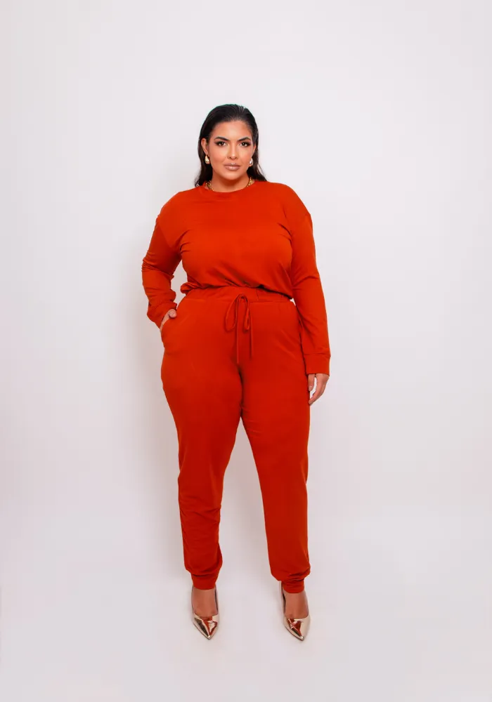 Conjunto Feminino Inverno Blusa Manga Longa + Calça Plus Size Ref 12105 Terra
