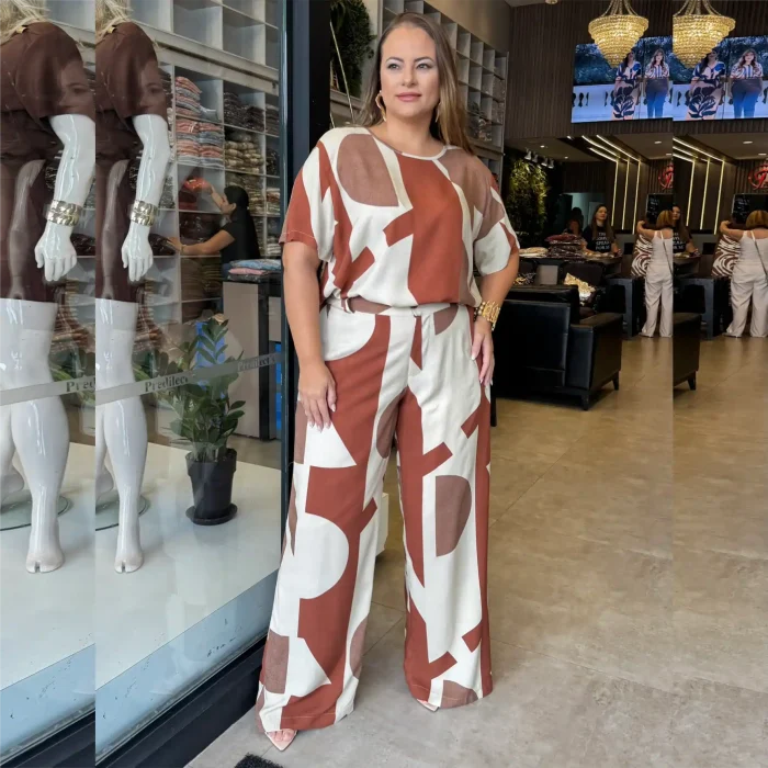 Conjunto Feminino Plus Size Blusa + Calça Ref 12592 Ferrugem