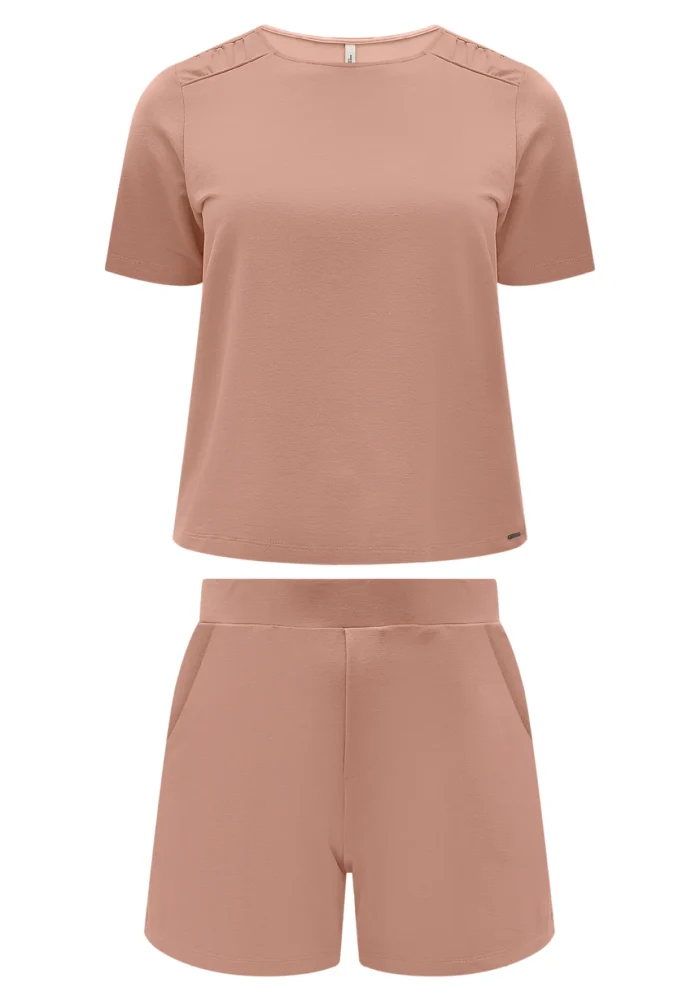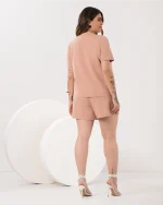 Conjunto Feminino Plus Size Blusa Manga Curta + Shorts Ref C0329 Bege