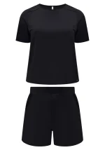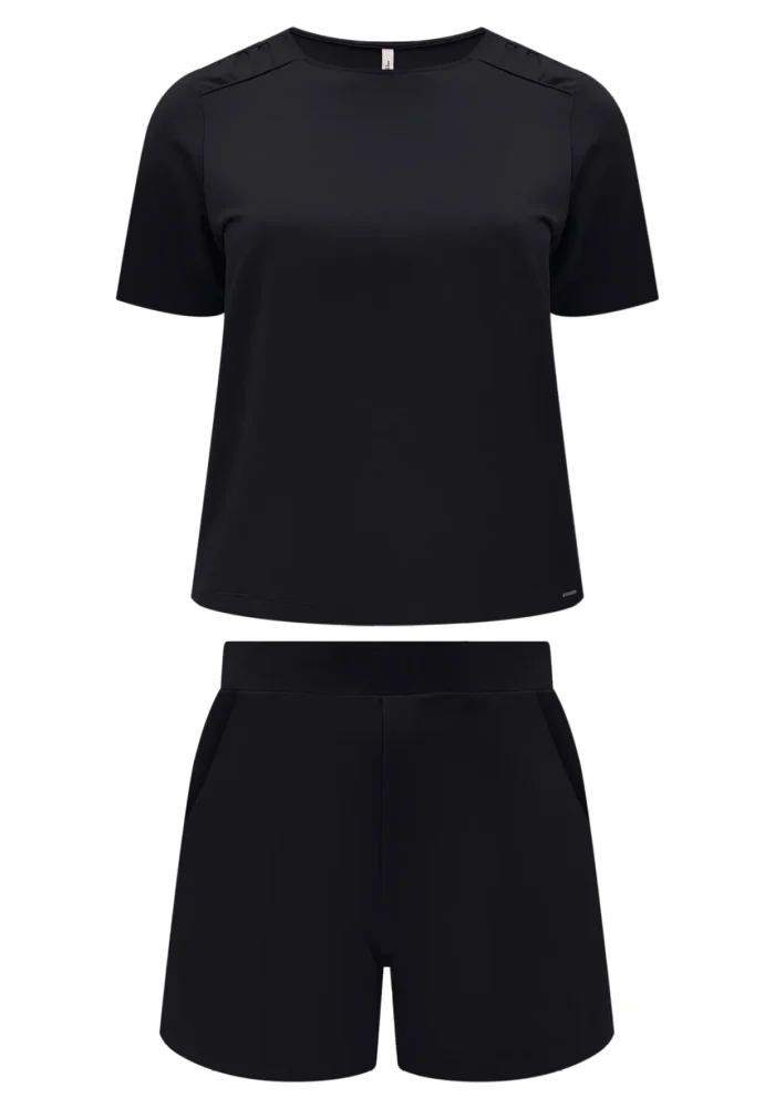Conjunto Feminino Plus Size Blusa Manga Curta + Shorts Ref C0329 Preto