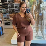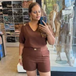 Conjunto Feminino Plus Size Blusa + Shorts Ref 12608 Marrom