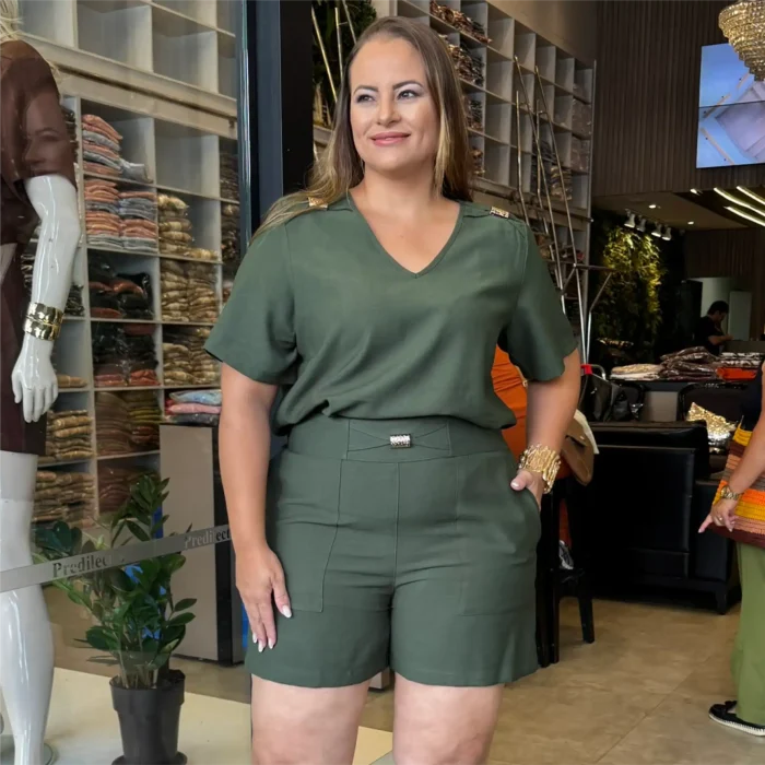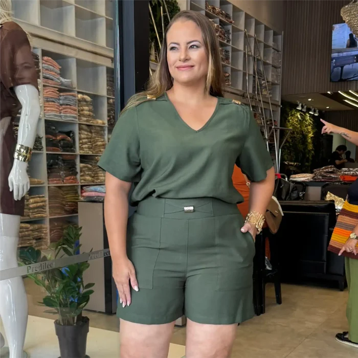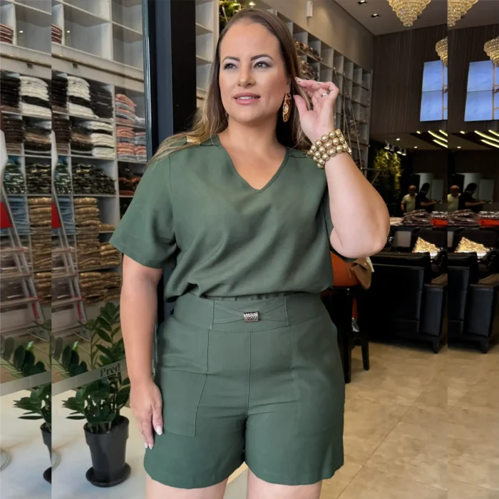 Conjunto Feminino Plus Size Blusa + Shorts Ref 12608 Verde
