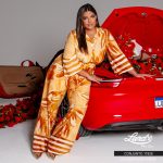 Conjunto Feminino Plus Size Camisa + Calça 11928 Estampa Mostarda