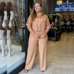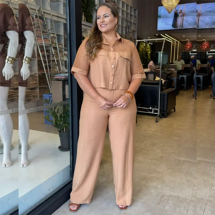 Conjunto Feminino Plus Size Cropped + Calça – Caramelo (Ref. 12572)