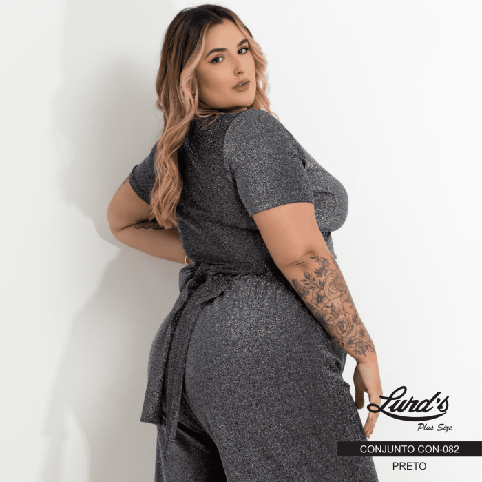Conjunto Feminino Plus Size Pantalona + Cropped Manga Curta Ref. CON-082 Preto