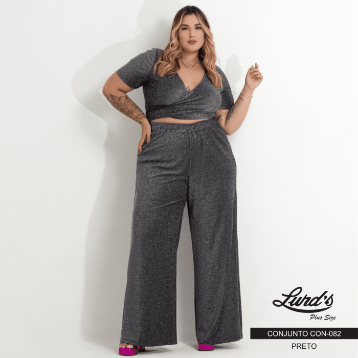 Conjunto Feminino Plus Size Pantalona + Cropped Manga Curta Ref CON-082