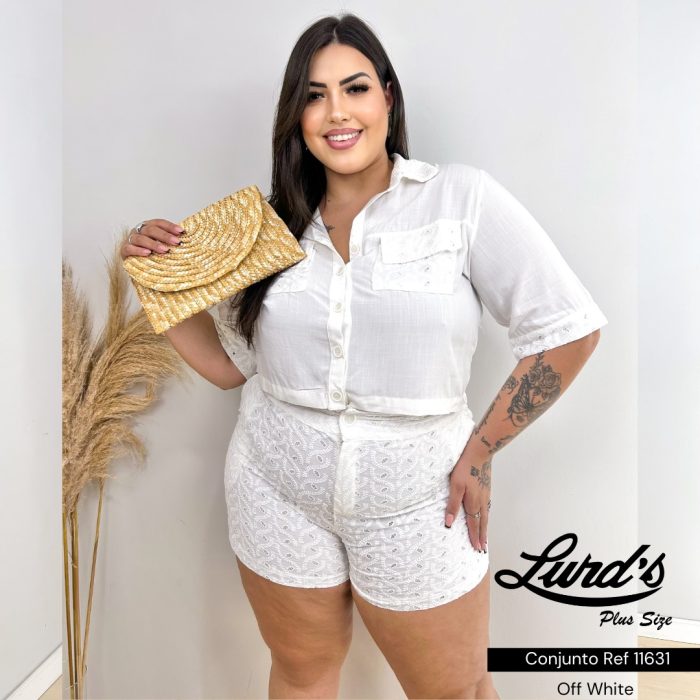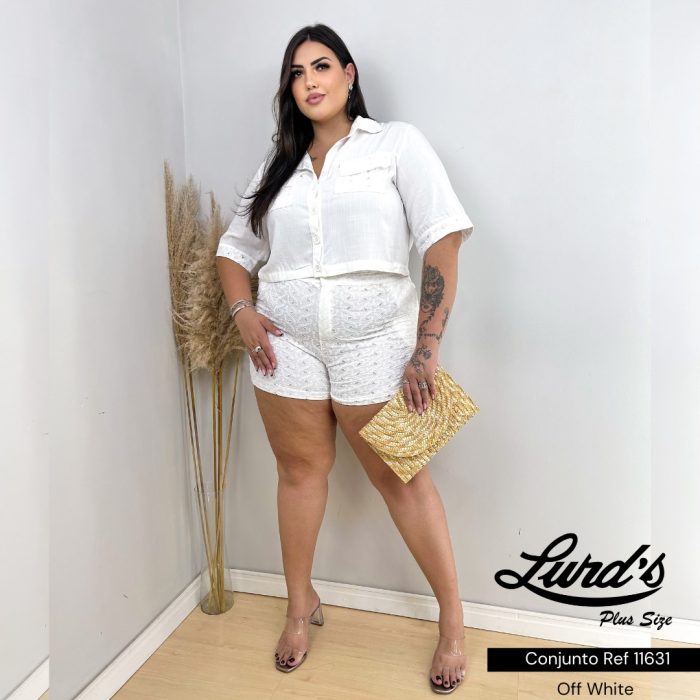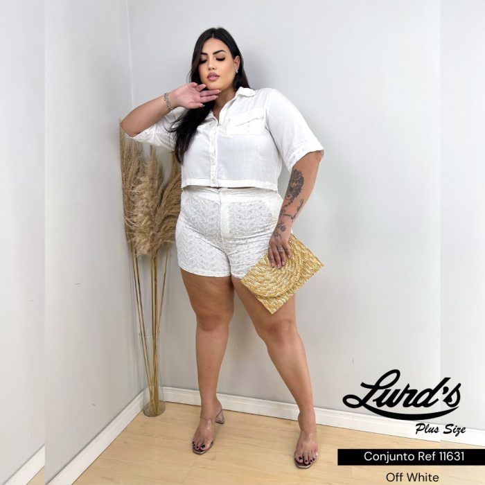Conjunto Plus Size Shorts + Cropped Ref 11631 Off White