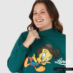 Detalhes: O blusão Cropped possui comprimento encurtado, apresentando gola alta, mangas longas com cavas deslocadas e estampa frontal temática. Detalhe para os punhos texturizados.