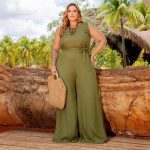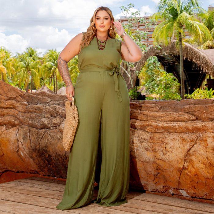 Macacão Longo Feminina Plus Size Manga Curta Ref 900751 Verde