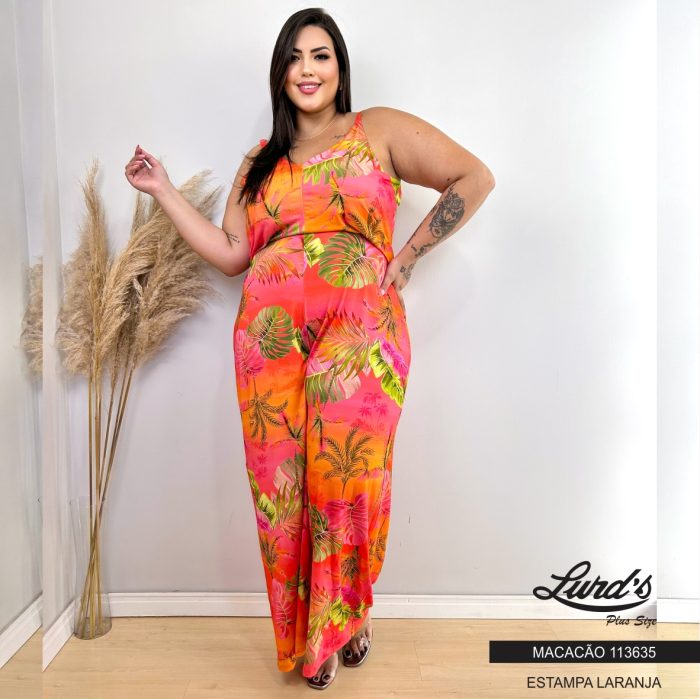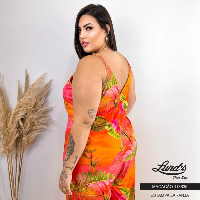 Macacão Longo Feminino Plus Size Ref 113635 Laranja