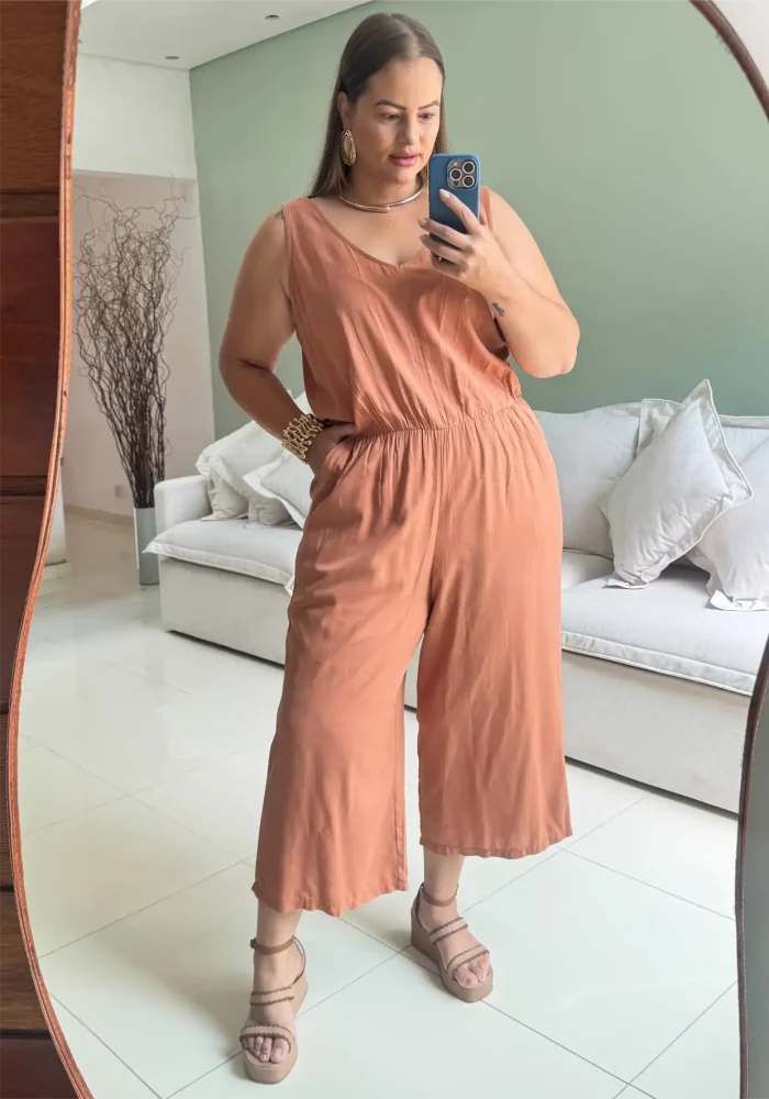 O Macacão Pantacourt Plus Size Marrie é a escolha perfeita para quem busca elegância e conforto em uma única peça. Com modelagem moderna e sofisticada, ele valoriza a silhueta e proporciona um caimento leve e fluido, ideal para diversas ocasiões.