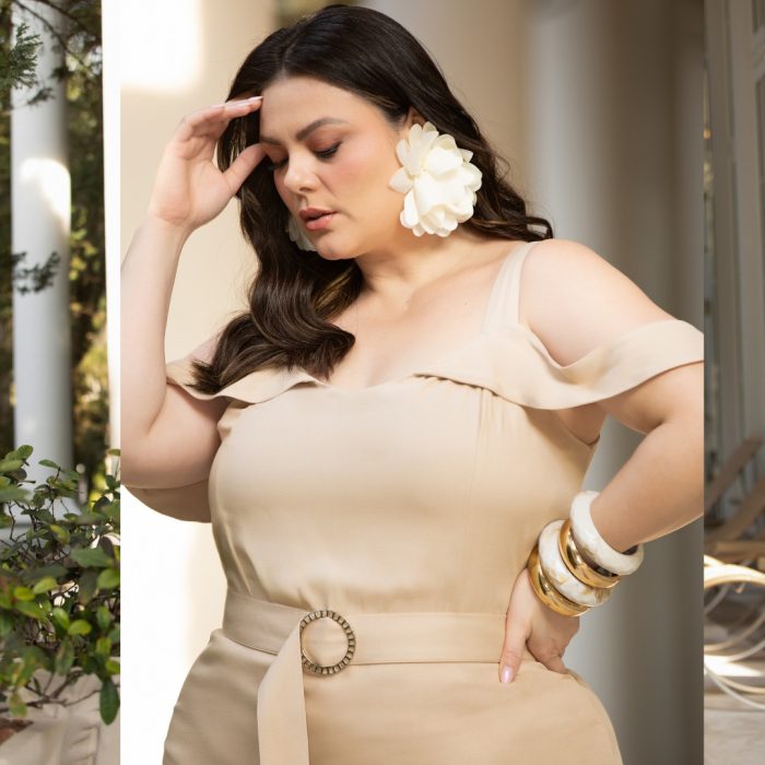 Realce sua elegância com o Macaquinho Feminino Plus Size em tom bege, que combina estilo e conforto em uma única peça. Seu design moderno inclui mangas curtas e um detalhe de ombro vazado, conferindo um toque de sofisticação e leveza. Perfeito para ocasiões casuais ou momentos especiais, ele valoriza sua silhueta de maneira natural.