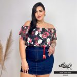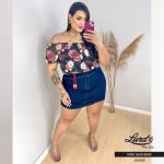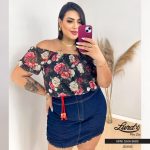 Conjunto Feminino Plus Size Cropped + Shorts Saia Oncinha Ref. 657468
