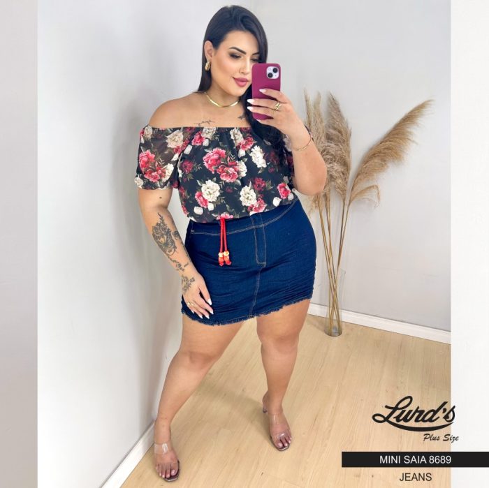 Mini Saia Plus Size Ref 8594 Jeans Claro