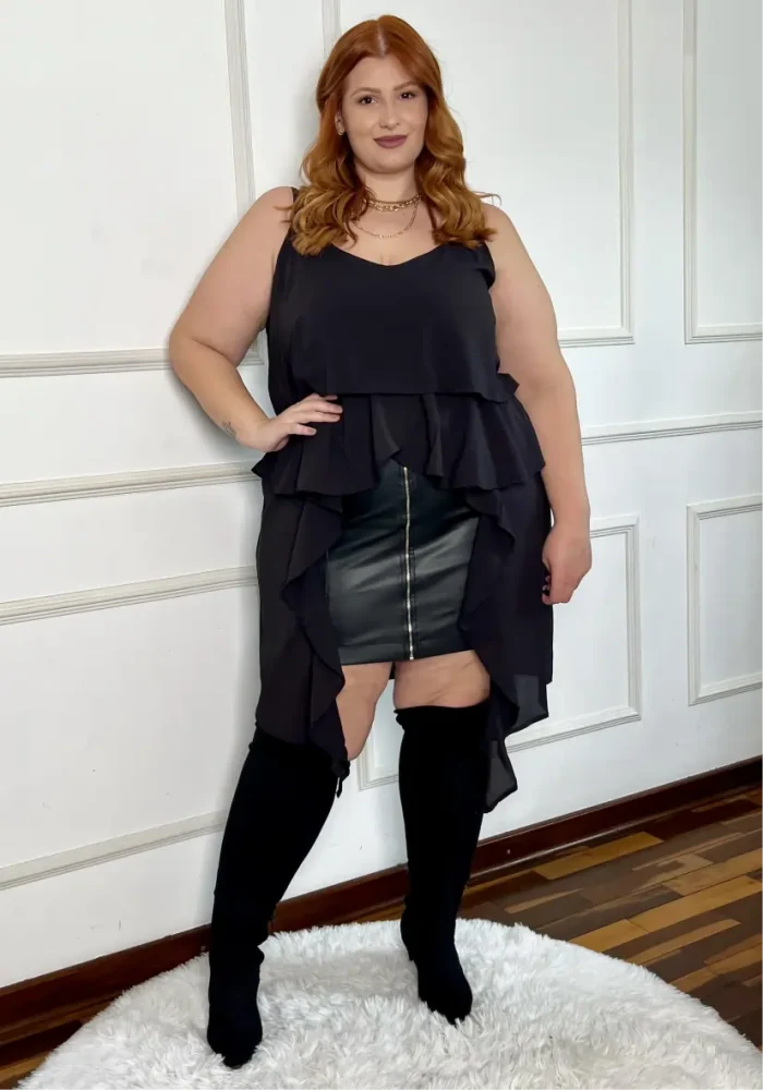 A regata que não pode faltar no seu closet plus size! Versátil, confortável e estilosa, perfeita pra montar looks descomplicados com aquele toque de atitude.