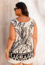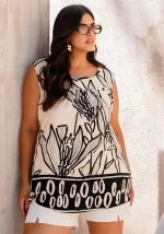 Blusa Feminina Plus Size Manga Curta Ref 23216 Estampa Bege