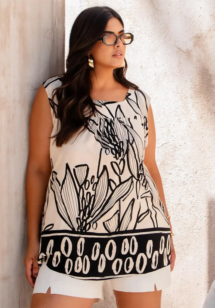 Regata Feminina Plus Size Com Alça Larga Ref 700833 Estampa Preto