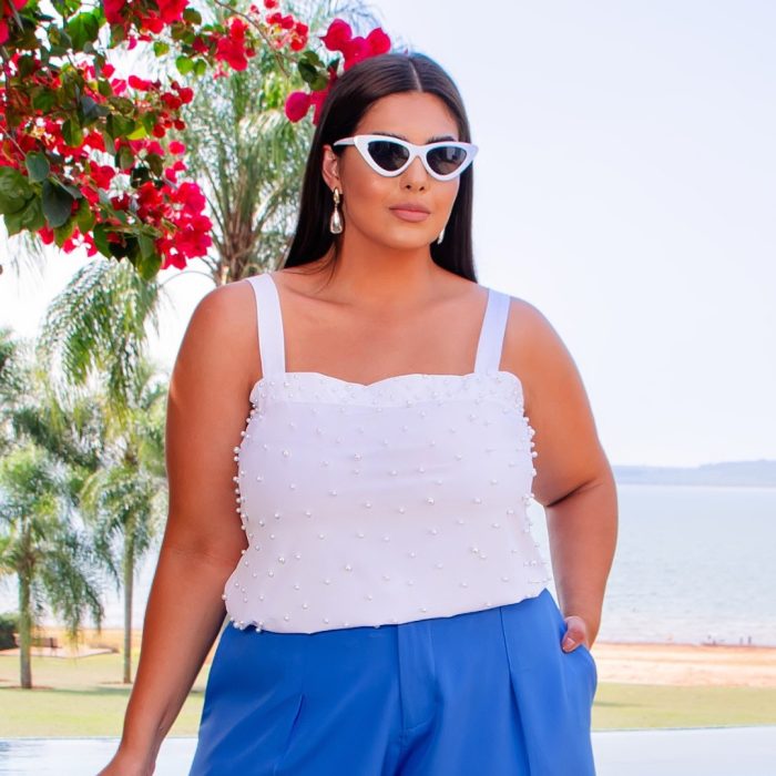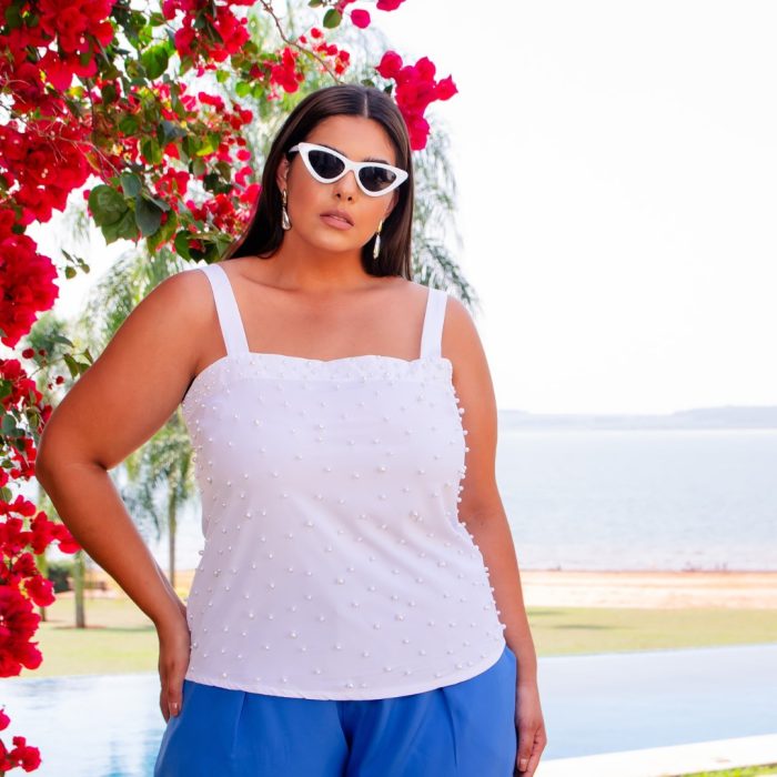 Elegante e cheia de charme, essa regata feminina plus size é perfeita para valorizar seu visual em qualquer ocasião. Confeccionada em tecido crepe, ela oferece um caimento leve e confortável, ideal para dias mais quentes. O destaque fica por conta das alças largas, que proporcionam mais segurança e suporte, além de um toque delicado com a aplicação de pérolas, dando um ar sofisticado à peça.