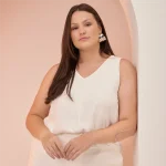 Cropped Feminino Plus Size Sem Manga Estampa Off White Ref 45384