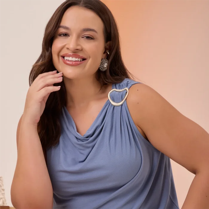 Blusa Feminina Plus Size Manga Curta Ref 222994 Estampa Azul