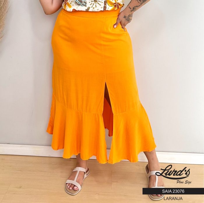 Saia Midi Plus Size Laranja – Elegância e Estilo para Qualquer Ocasião