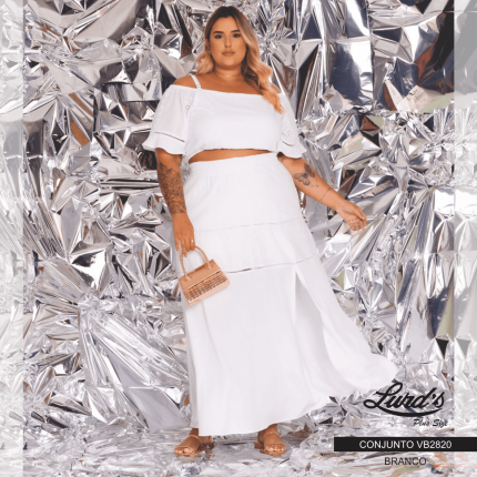 Conjunto Feminino Plus Size Saia + Cropped Branco