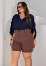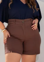 O Shorts Plus Size Ref. 810149 une conforto, sofisticação e ajuste perfeito. Com modelagem alfaiataria, ele garante caimento estruturado, ideal para produções casuais ou mais elegantes.