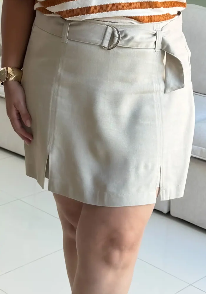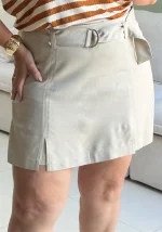 Shorts Saia Feminino Plus Size Linho Cru com Fivela de Aviamento