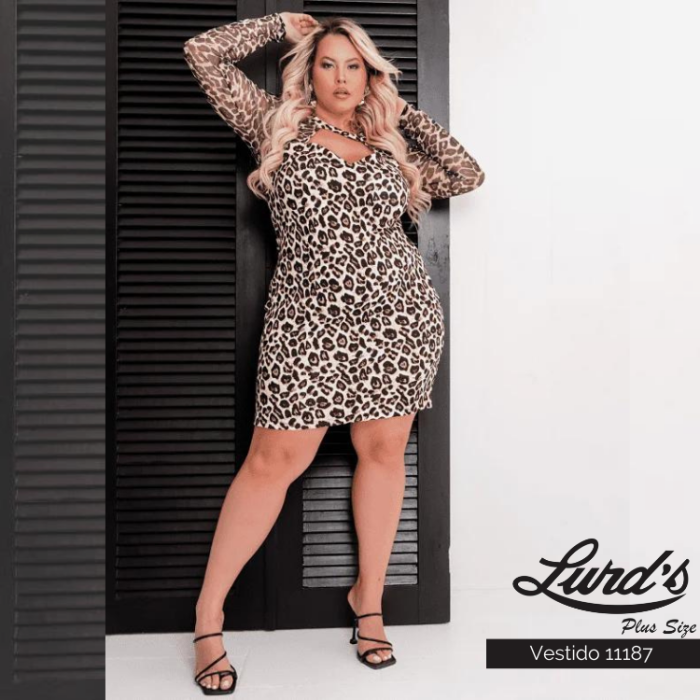 Vestido Curto Plus Size Manga Longa Ref 11187 Oncinha