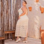 Vestido Longo Plus Size Sem Manga Ref 900776 Bege