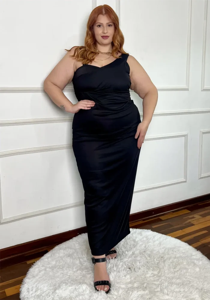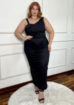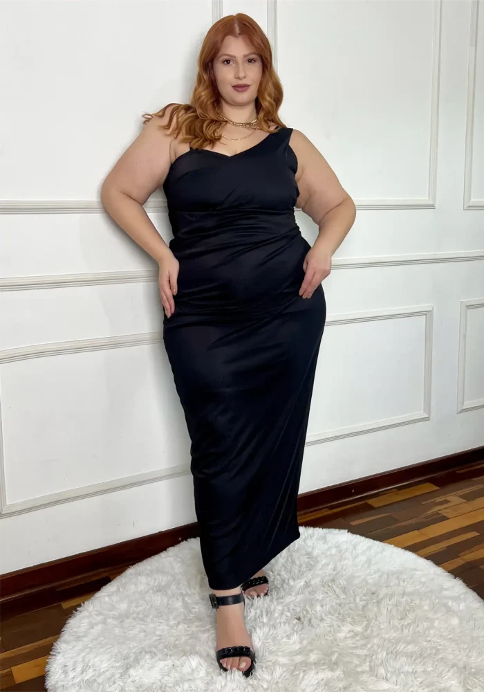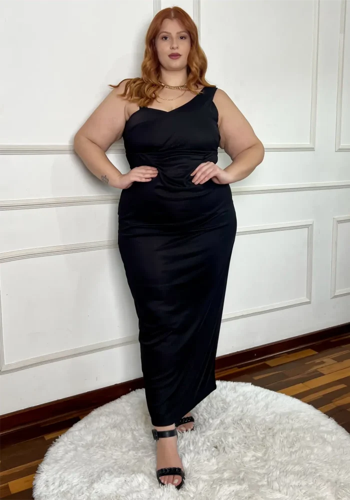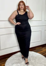 Vestido Longo Sem Manga Plus Size Ref 207272 Preto