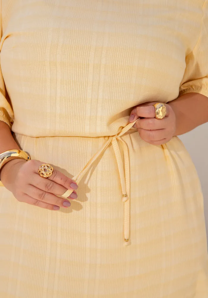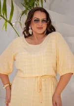 Vestido Manga Curta Plus Size Ref. 900834 Amarelo
