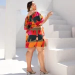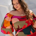 Vestido Manga Curta Plus Size Ref. 900846 – Estampa Vinho 🍷✨