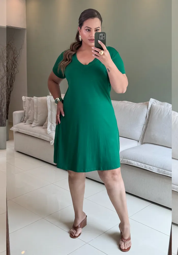 Vestido Manga Curta Plus Size Ref VMM-003 Verde