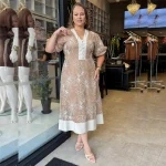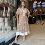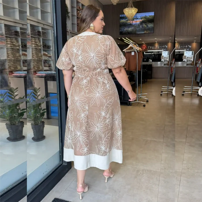 Vestido Mid Plus Size Manga Curta Ref 12607 Bege