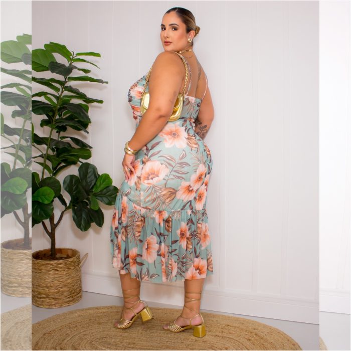 Vestido Mid Plus Size Sem Manga Ref 007184 Estampa Verde